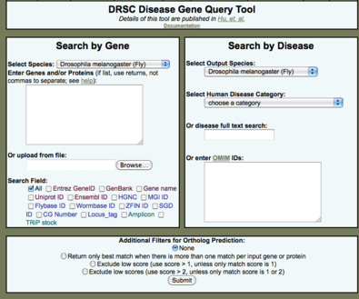DIOPT Diseases and Traits (DIOPT-DIST) is a spin-off of our DIOPT tool for identification of orthlogs. DIOPT-DIST make one more connection to link from model species to human genome to disease-associated genes.